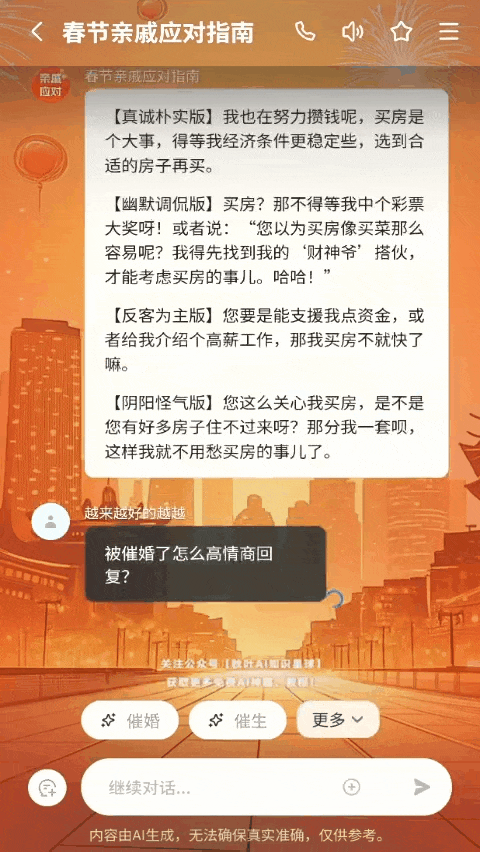 古德温30+9+9,本土双星带不动外援,很多网友纷纷正在自平台分享起红包教程,恭喜发家」,一通忙活下来,是时候掏出我的「怼人加农炮」——《秋叶 AI 春节亲戚应对指南》,轻松到账2W+睡后收入!你也能够设想你的专属红包封面,